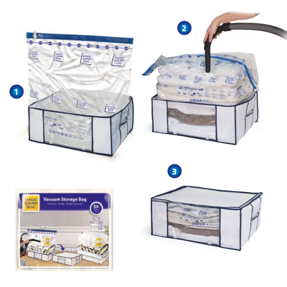 Bring innovation to your life with the vacuum storage chest, helping you neatly store bulky home textiles like pillows, quilts, and blankets in one go while saving valuable space in your home.